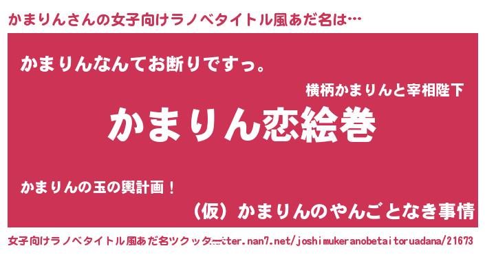 | 男性向けラノベタイトル風あだ名 | 『ノーゲーム・ノーカマリン』 |