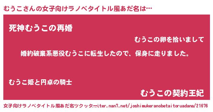| 男性向けラノベタイトル風あだ名 | 『ムウコスレイヤー』『むうこの憂鬱』 |