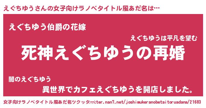 | 男性向けラノベタイトル風あだ名 | 『ノーゲーム・ノーエグチユウ』 |