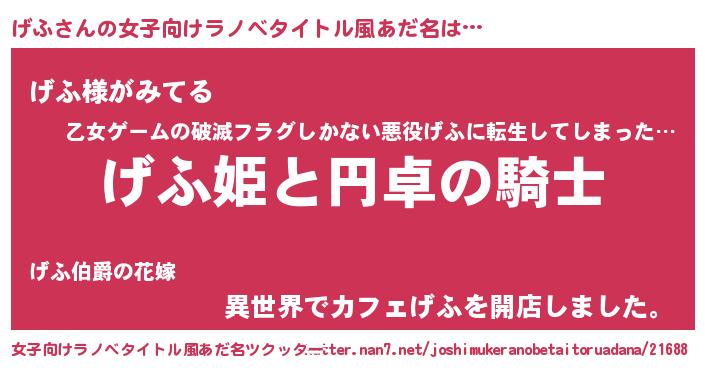 | 男性向けラノベタイトル風あだ名 | 『ゲフアートオンライン』 |