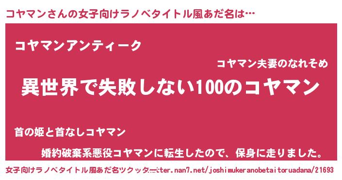 | 胡散臭い通販商品みたいなあだ名 | 『絶対に幸福をもたらす水素水…その名も「コヤマン」』 |