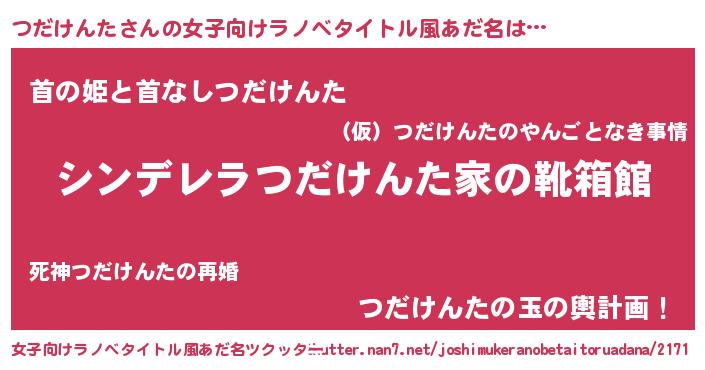 | 胡散臭い通販商品みたいなあだ名 | 『必ず成功するブレスレット…その名も「つだけんた」』 |
