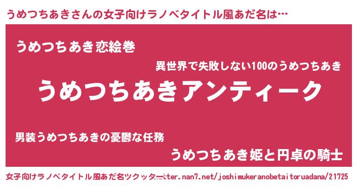 | 肩書あだ名 | 『うめつちあき閣下』『うめつちあき社長』 |