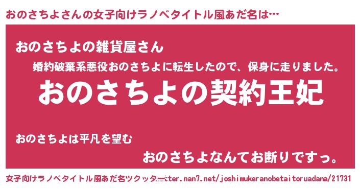 | ヒーロー風カッコイイあだ名 | 『ネオオノサチヨ』『魔戒騎士オノ』 |