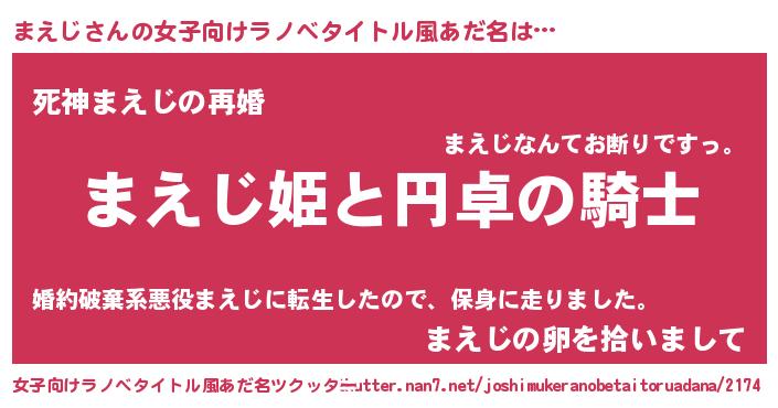 | 胡散臭い通販商品みたいなあだ名 | 『モテモテ間違いなしブレスレット…その名も「まえじ」』 |
