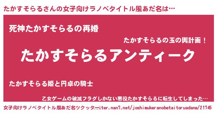 | 男性向けラノベタイトル風あだ名 | 『魔法科高校のたかすそらる』 |