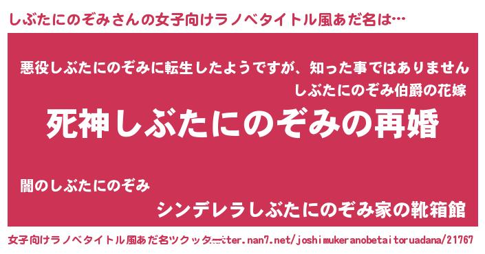 | 男性向けラノベタイトル風あだ名 | 『ノーゲーム・ノーシブタニノゾミ』 |