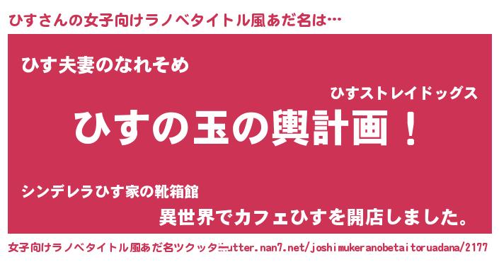 | 男性向けラノベタイトル風あだ名 | 『ひす~年齢イコール彼女いない歴の魔法使い~』 |
