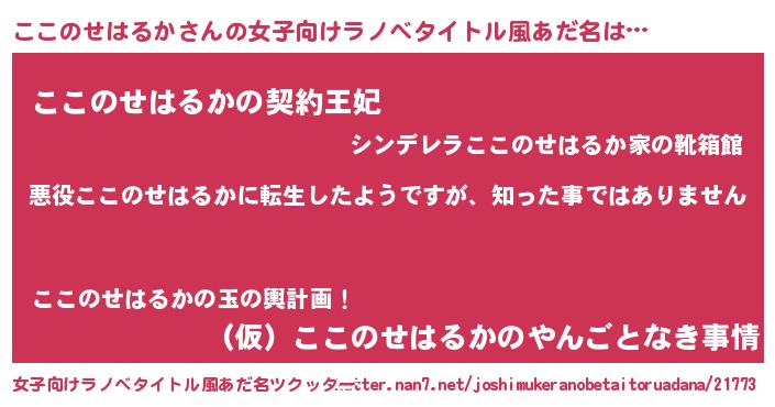 | ヘコむあだ名 | 『ここのせはるか(震え声)』『ここにゅー』 |
