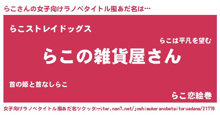 | 意味不明あだ名 | 『らこフォーエバー』『自称らこ』 |
