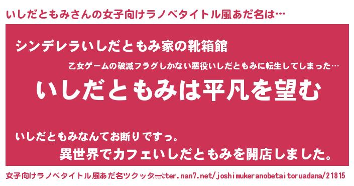 | 男性向けラノベタイトル風あだ名 | 『ダンジョンにいしだともみを求めるのは間違っているだろうか』 |