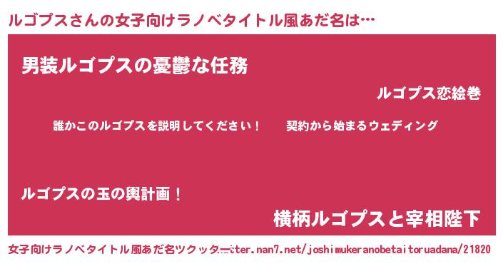 | ヘコむあだ名 | 『ルゴもー』『ルゴっぺ』『なまこ酢』 |