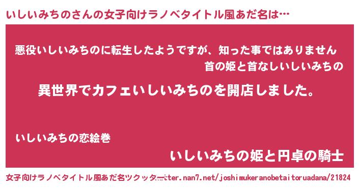 | 男性向けラノベタイトル風あだ名 | 『誰もが恐れるあのいしいみちのが、ぼくの専属メイドになるようです。』 |