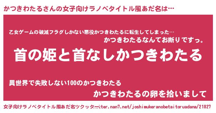 | 男性向けラノベタイトル風あだ名 | 『はたらくかつきわたるさま!』 |