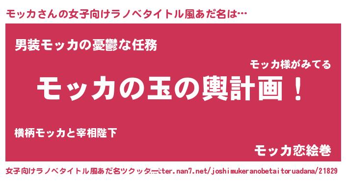 | 男性向けラノベタイトル風あだ名 | 『転生したらモッカだった件』 |