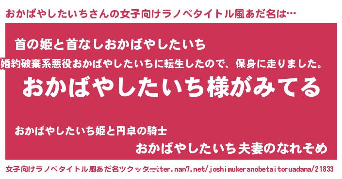 | 胡散臭い通販商品みたいなあだ名 | 『全米が絶賛したサプリメント…その名も「おかばやしたいち」』 |