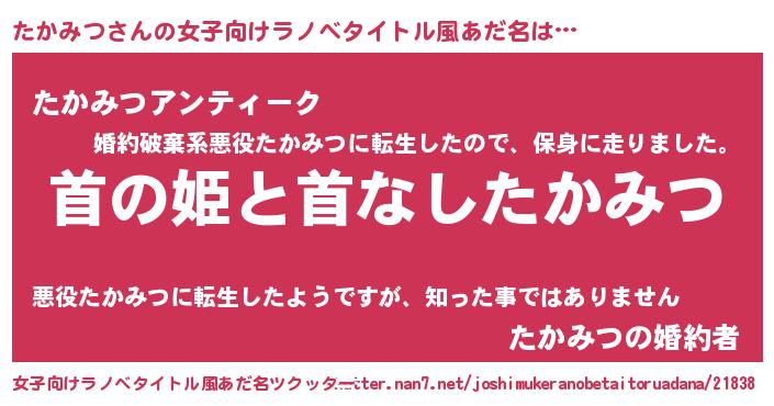 | 意味不明あだ名 | 『自称たかみつ』『たかみつフォーエバー』 |