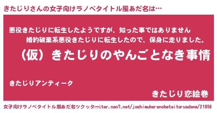 | 男性向けラノベタイトル風あだ名 | 『きたじりの憂鬱』 |