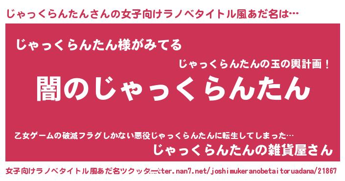 | 男性向けラノベタイトル風あだ名 | 『Re:じゃっくらんたんから始める異世界生活』 |