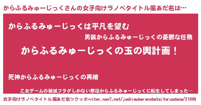 | 胡散臭い通販商品みたいなあだ名 | 『全米が絶賛したサプリメント…その名も「からふるみゅーじっく」』 |