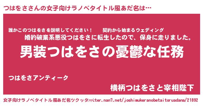 | 男性向けラノベタイトル風あだ名 | 『冴えないつはをさの育てかた』 |