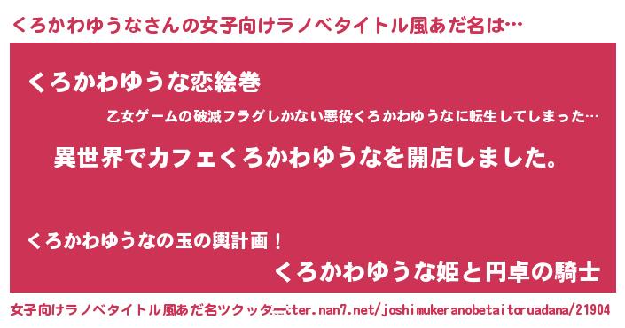 | 胡散臭い通販商品みたいなあだ名 | 『前代未聞の水素水…その名も「くろかわゆうな」』 |