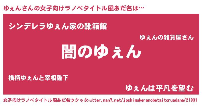 | ヒーロー風カッコイイあだ名 | 『最強戦士ユェン』『暗黒騎士ユェ』 |
