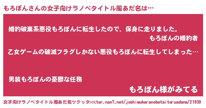 | 男性向けラノベタイトル風あだ名 | 『魔弾の王ともろぼん』 |