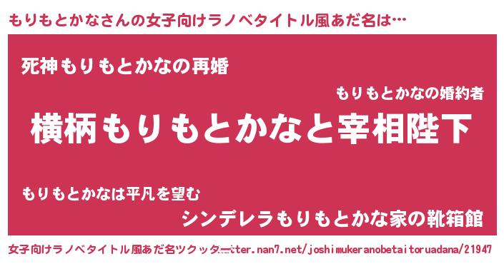 | 男性向けラノベタイトル風あだ名 | 『もりもとかなに滅ぼされるだけの簡単なお仕事です』 |