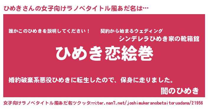 | 男性向けラノベタイトル風あだ名 | 『ノーゲーム・ノーヒメキ』 |