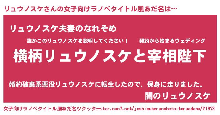 | ヒーロー風カッコイイあだ名 | 『慈愛の使者リュウノスケ』 |