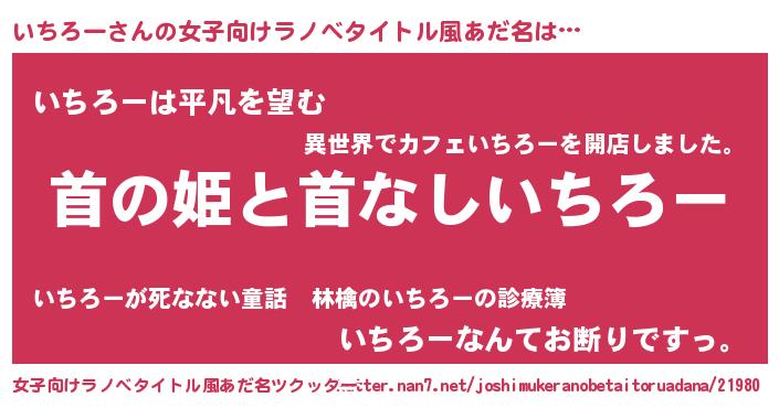 | ヘコむあだ名 | 『いちぷりん』『いちろー(爆)』 |