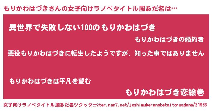 | 男性向けラノベタイトル風あだ名 | 『この素晴らしい世界にもりかわはづきを!』 |
