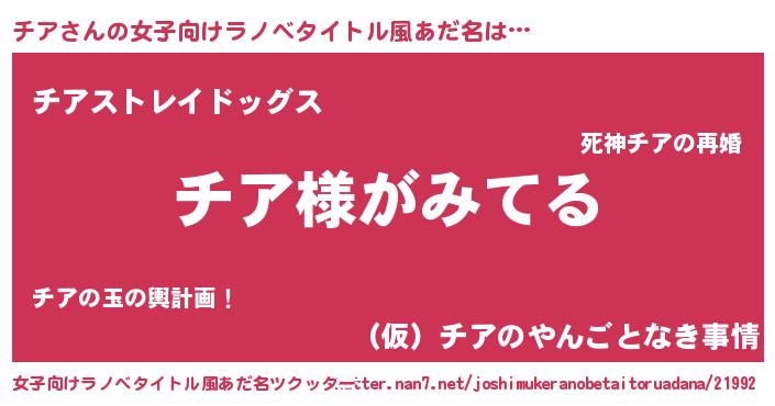 | ヘコむあだ名 | 『チア太郎』『チアにゅー』 |
