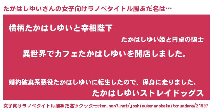 | 胡散臭い通販商品みたいなあだ名 | 『前代未聞の健康食品…その名も「たかはしゆい」』 |