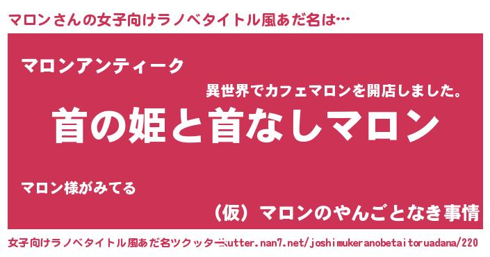 | 男性向けラノベタイトル風あだ名 | 『はたらくマロンさま!』『マロンの憂鬱』 |