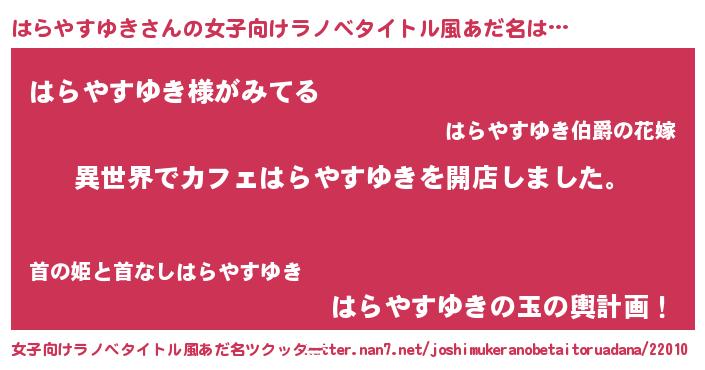 | 意味不明あだ名 | 『永久保存はらやすゆき』 |