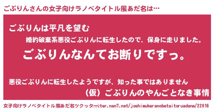| 意味不明あだ名 | 『自称ごぶりん』『ペロリンごぶりん』 |