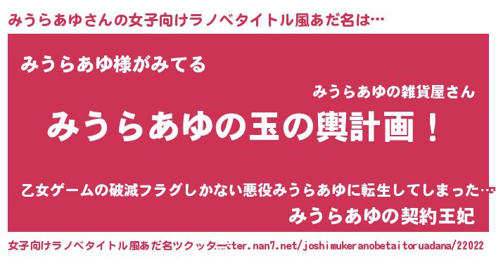 | ヒーロー風カッコイイあだ名 | 『炎刃騎士ミウ』『ネオミウラアユ』 |
