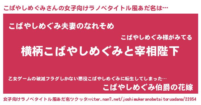 | 男性向けラノベタイトル風あだ名 | 『こばやしめぐみに滅ぼされるだけの簡単なお仕事です』 |