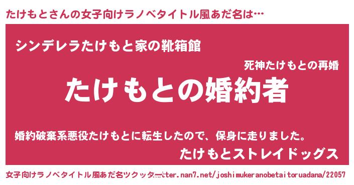 | ファンタジー風あだ名 | 『エターナルタケモトー』『ゼタケトゥ』 |