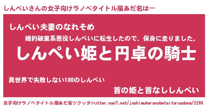 | 2回繰り返すあだ名 | 『しんしん』『ぶかぶか』『よぼよぼ』 |
