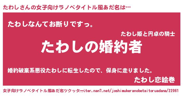| 恥ずかしいあだ名 | 『たわっちょ』『タワシデラックス』 |