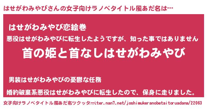 | 男性向けラノベタイトル風あだ名 | 『はたらくはせがわみやびさま!』 |