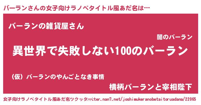 | 男性向けラノベタイトル風あだ名 | 『バーランという概念が存在しない退屈な世界 』 |