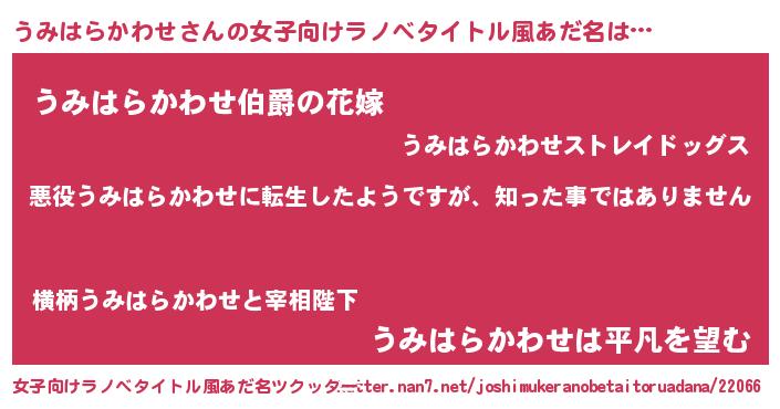 | 意味不明あだ名 | 『住所不定無職うみはらかわせ(40歳)』 |