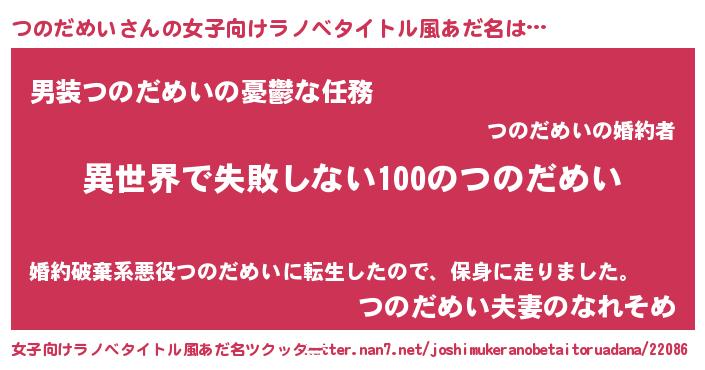 | 男性向けラノベタイトル風あだ名 | 『つのだめいという概念が存在しない退屈な世界 』 |