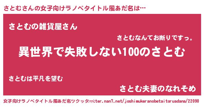| ヒーロー風カッコイイあだ名 | 『ネオサトム』『ウルトラさとむマン』 |