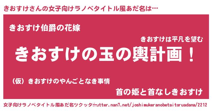 | 胡散臭い通販商品みたいなあだ名 | 『運命の人と巡り会える高級そうな絵画…その名も「きおすけ」』 |
