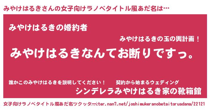 | 意味不明あだ名 | 『自称みやけはるき』 |